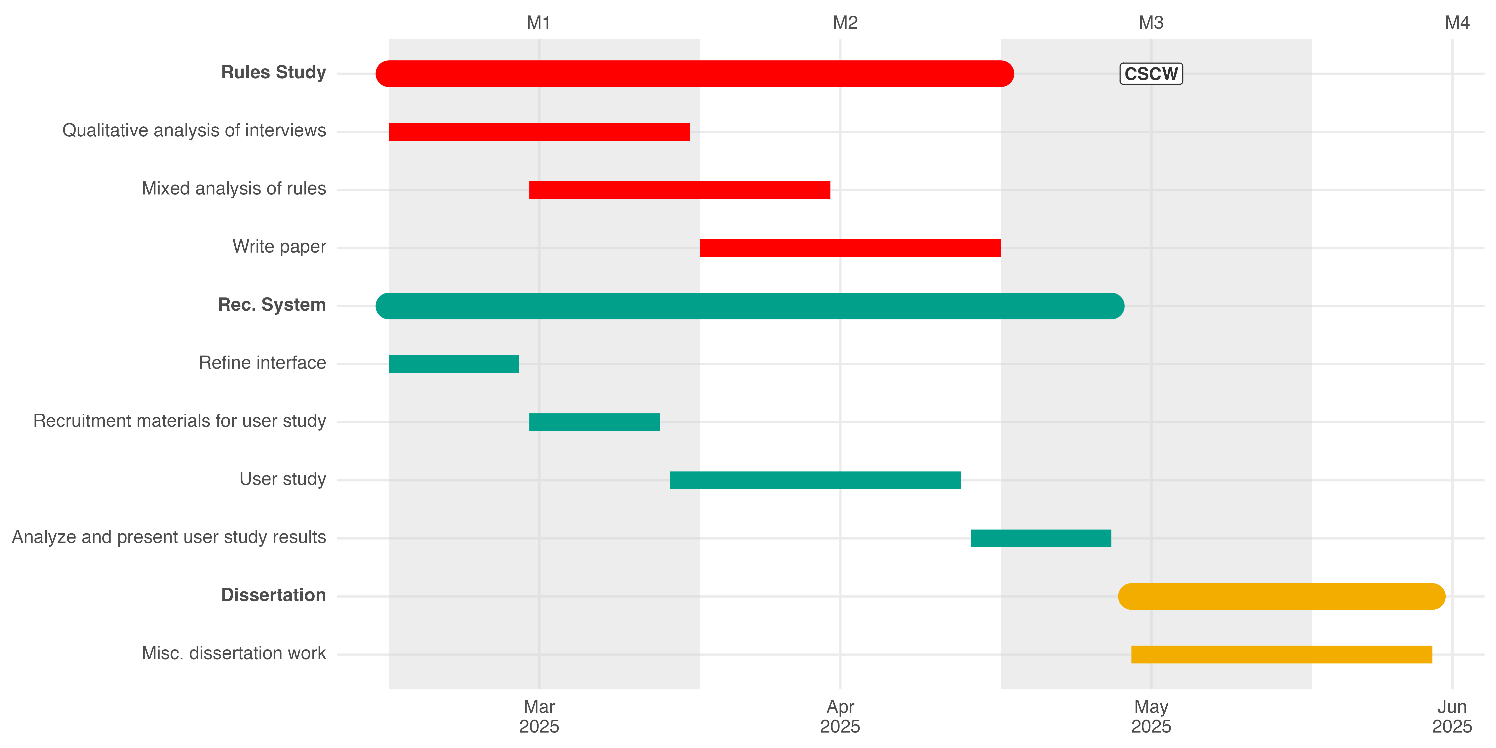 Figure 1: Gantt chart for the timeline and major milestones remaining.