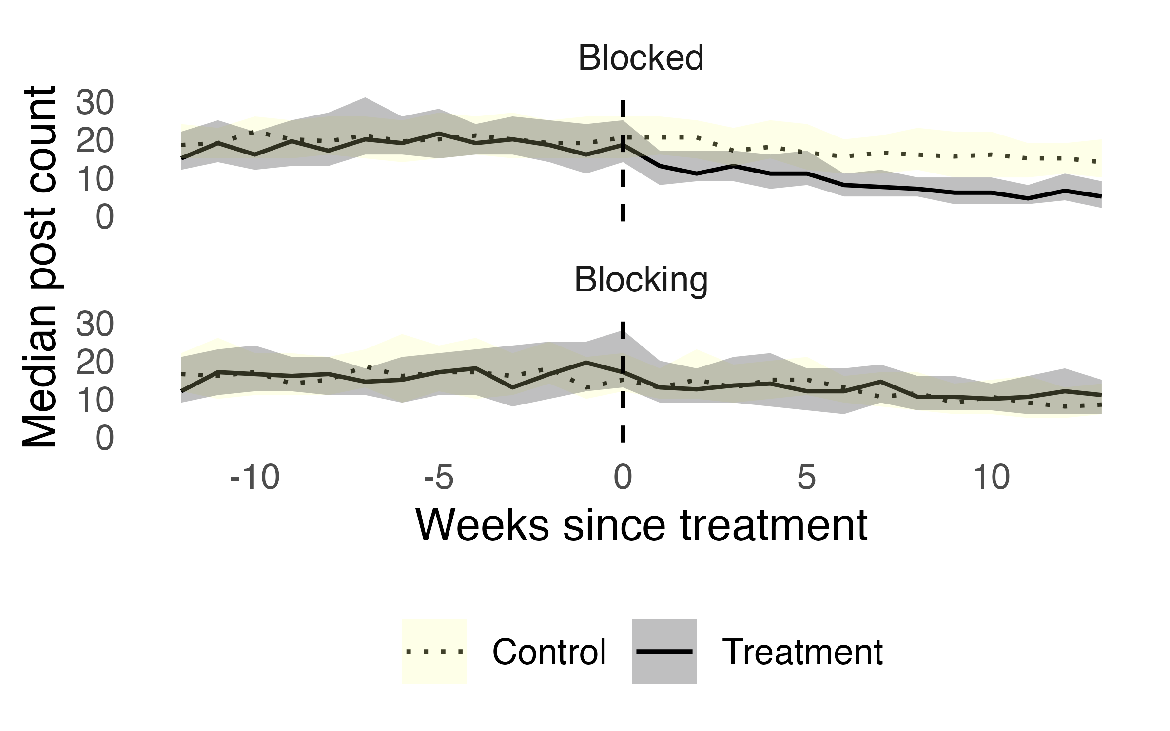 Previous research into group sanctions show they can be effective in altering anti-social behavior,1 but communities do not exist in isolation and users can continue their operations off-platform.2