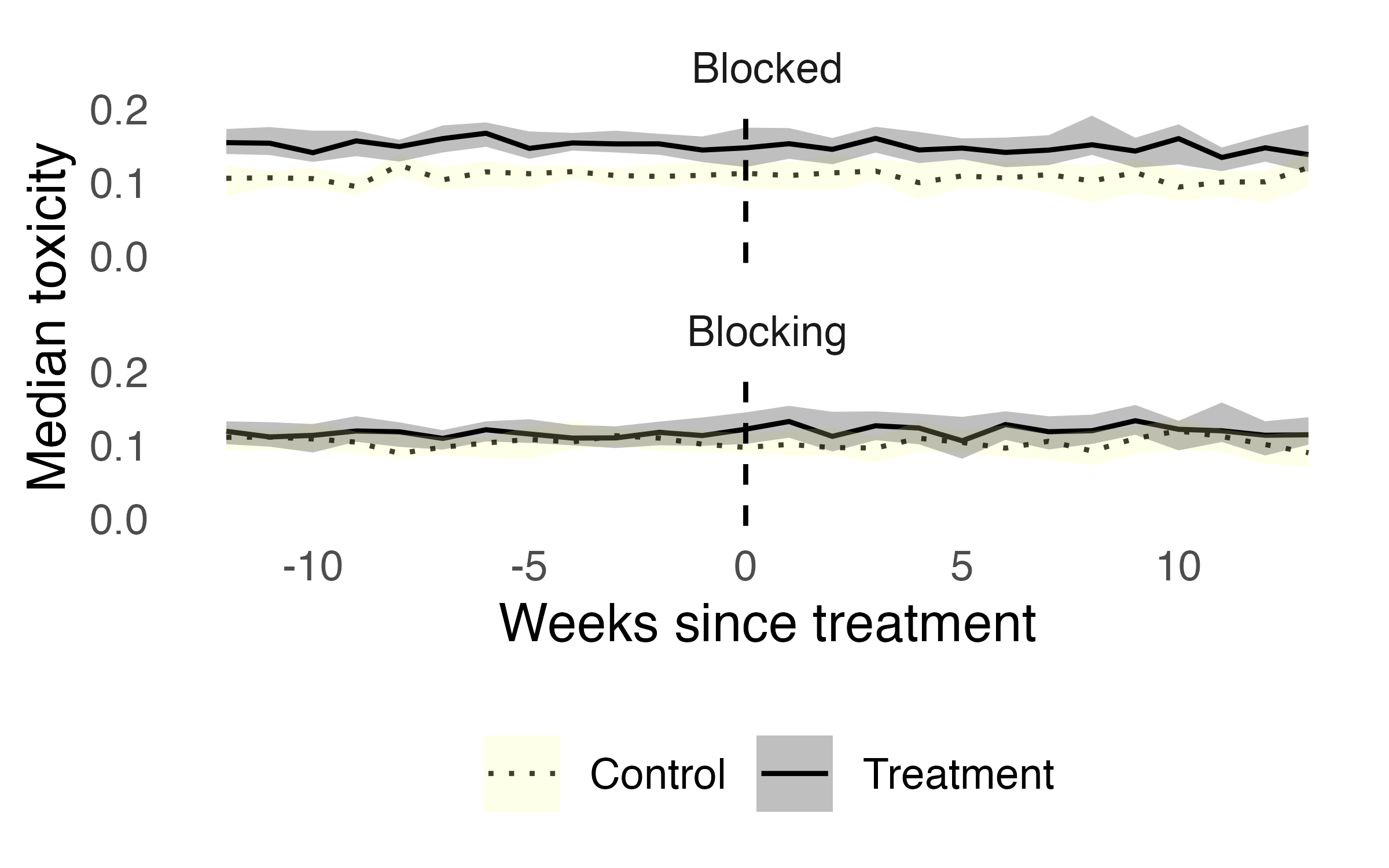 Colglazier, Carl, Nathan TeBlunthuis, and Aaron Shaw. “The Effects of Group Sanctions on Participation and Toxicity: Quasi-experimental Evidence from the Fediverse.” In Proceedings of the International AAAI Conference on Web and Social Media, vol. 18, pp. 315-328. 2024.