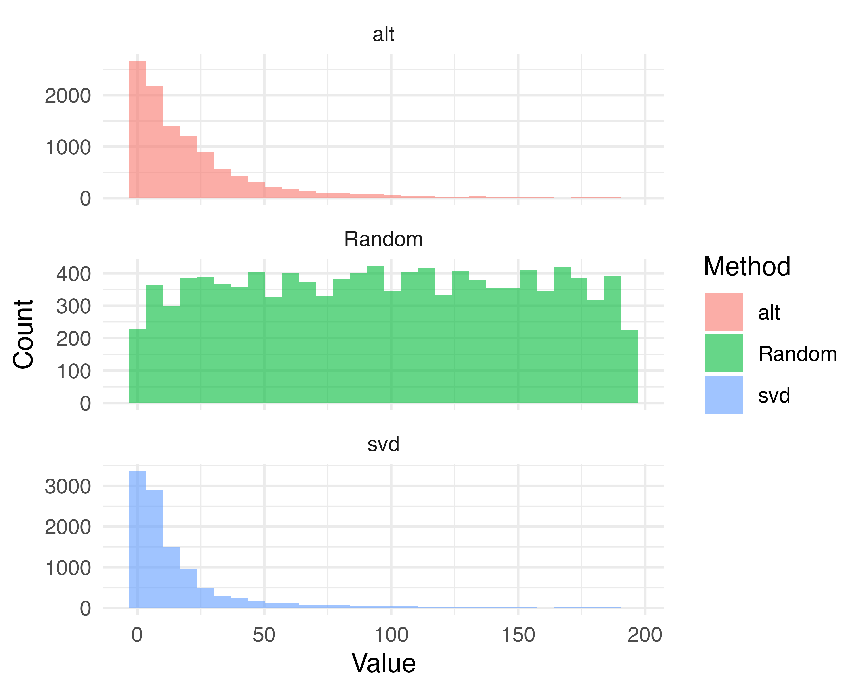 Apply singular value decomposition (SVD) on \(M\) to create a new matrix \(M'\)